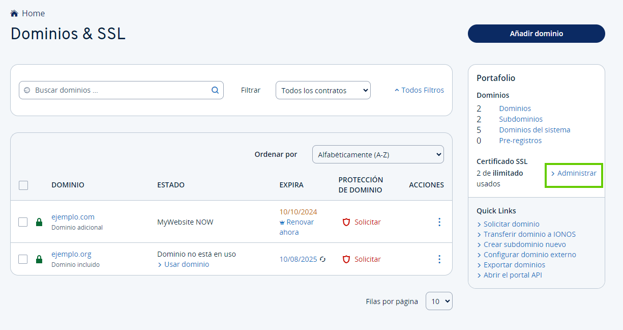 Configurar un certificado SSL gestionado por IONOS (SSL Starter/SSL Starter Wildcard)