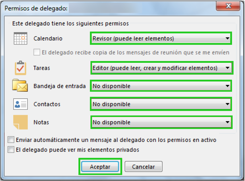 Definir la configuración de su delegado desde su cuenta de Outlook
