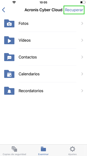 - Para restaurar todos los datos, pulse en Recuperar, seleccione todas las categorías y pulse Recuperar [cantidad] elementos.