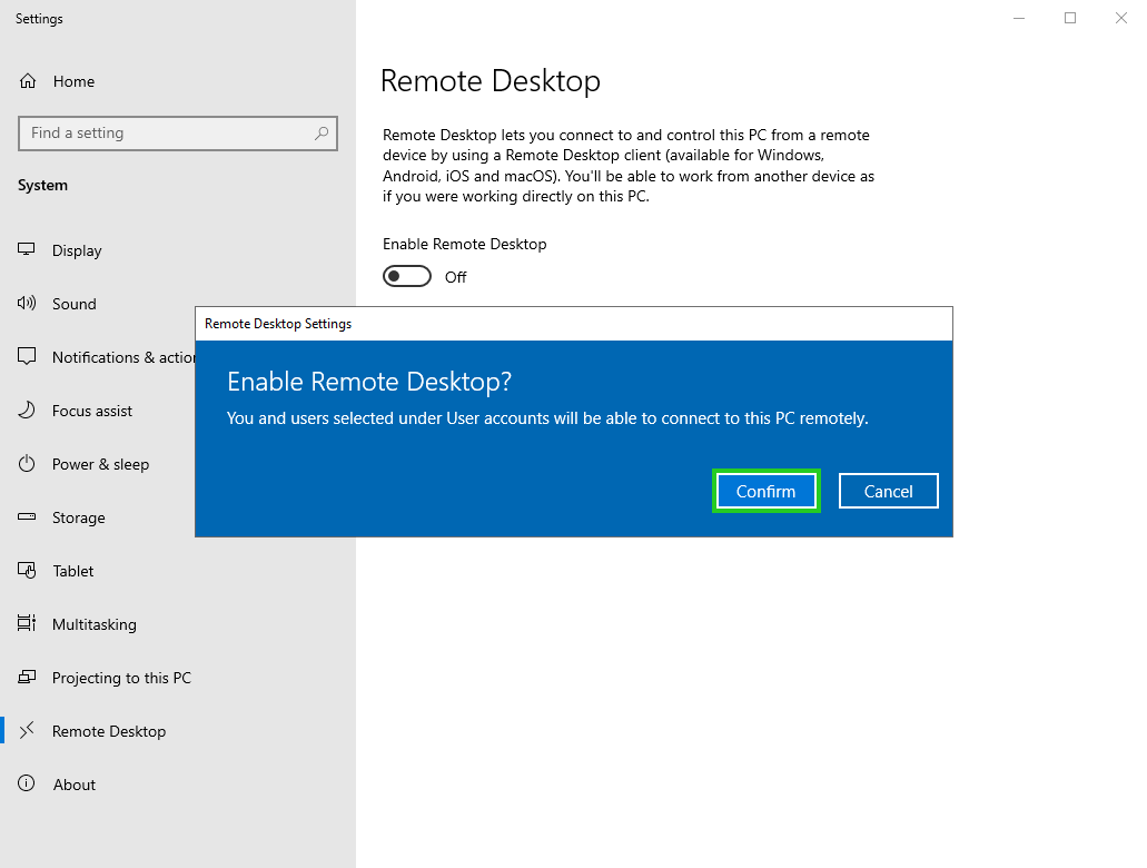 En la barra de menús izquierda, haga clic en Remote Desktop.