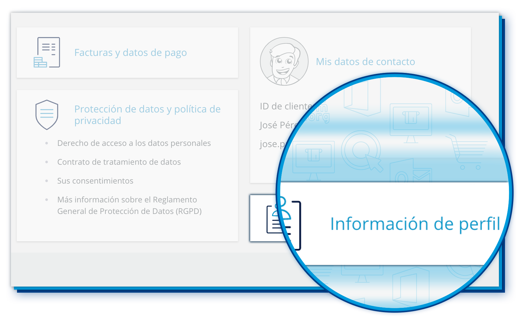 Gestione sus datos de contacto, acceda a las facturas y actualice sus datos de pago.