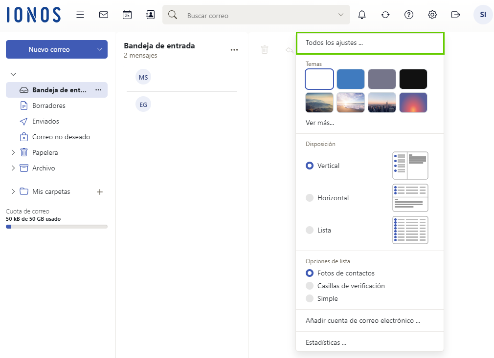 - Cambia la contraseña de la cuenta de correo electrónico afectada y configura una nueva contraseña segura desde el Panel de Control de tu cuenta IONOS.
