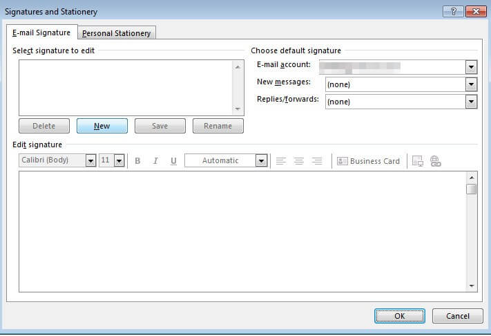 Crear una firma de correo electrónico en Outlook 2013 a 2016