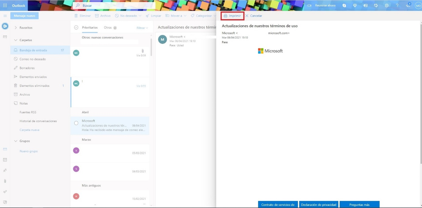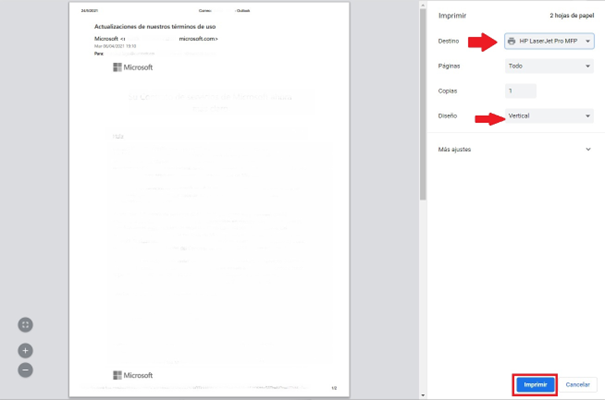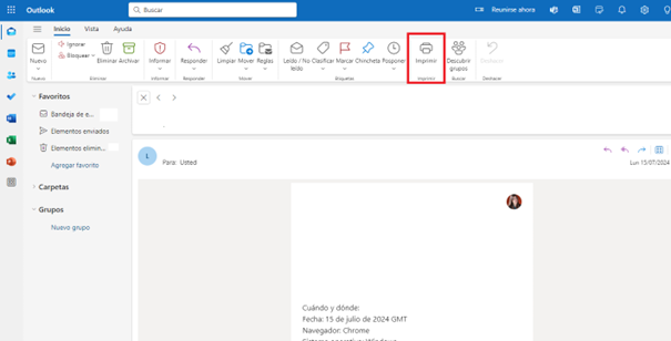 Paso 3: Tal y como indicamos anteriormente, solo tienes que hacer clic en el botón “Imprimir” para imprimir tu correo.