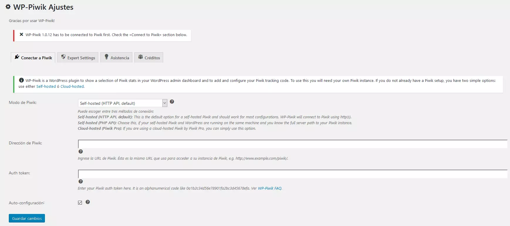Configurar Piwik para WordPress mediante tracking code