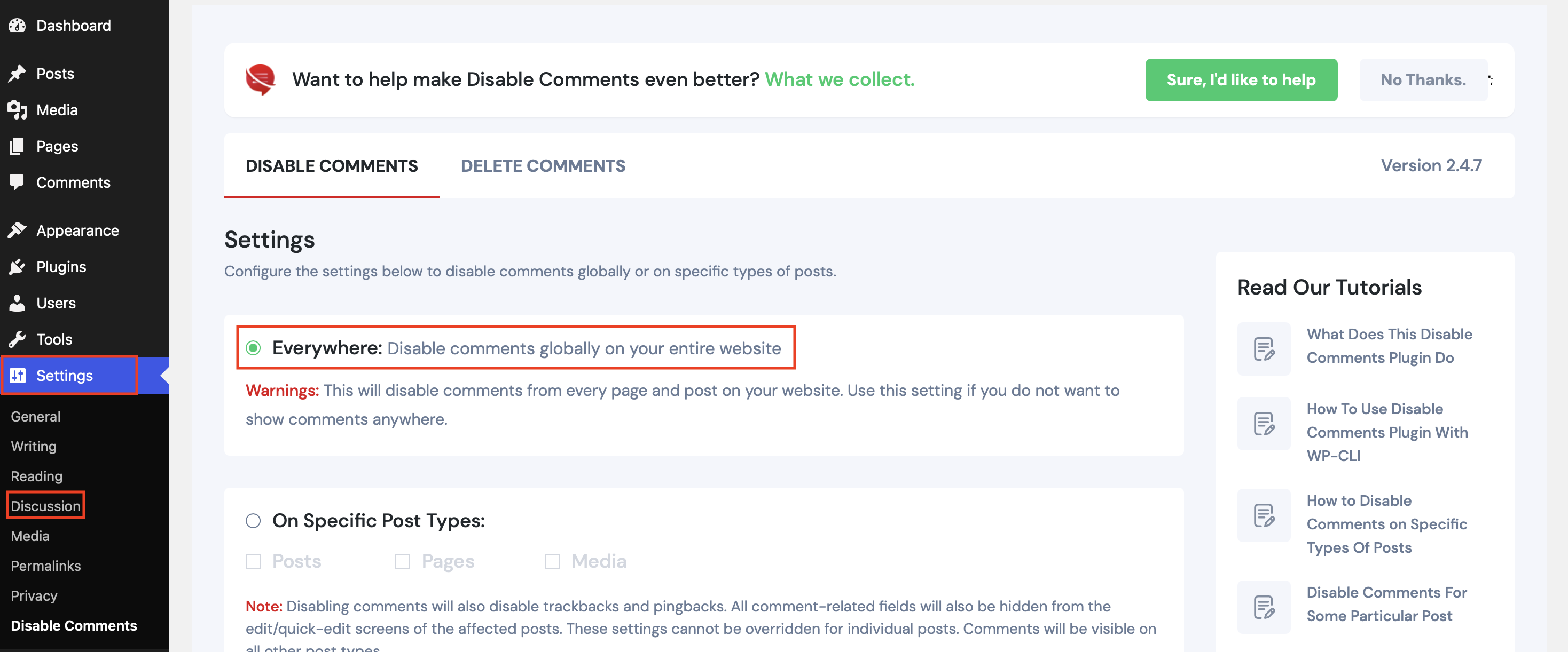 WordPress: desactivar la función de comentarios en toda la página web