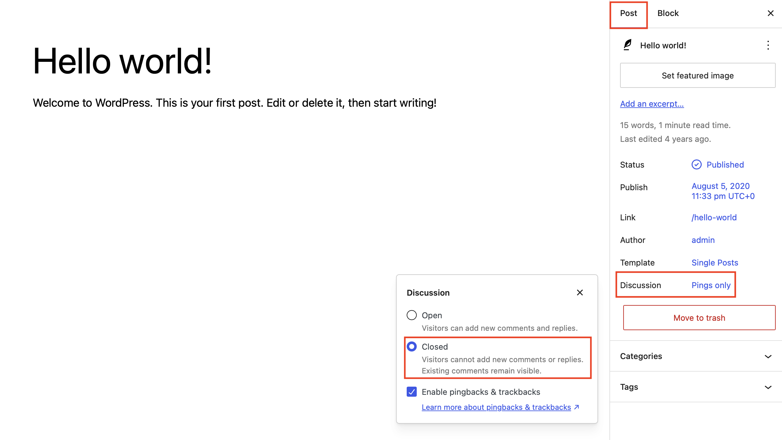 A continuación, comprueba si los comentarios de las entradas y páginas están realmente desactivados.