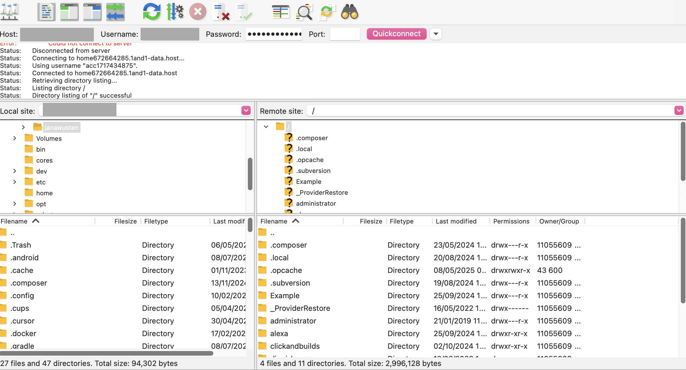 Con la ayuda de un cliente FTP como FileZilla, todos los archivos WordPress se almacenan localmente. Para ello, selecciona la página web correcta dentro de la estructura de tus carpetas y copia los datos a tu disco duro. Así, habrás completado todos los archivos y podrás comenzar con la migración de WordPress.