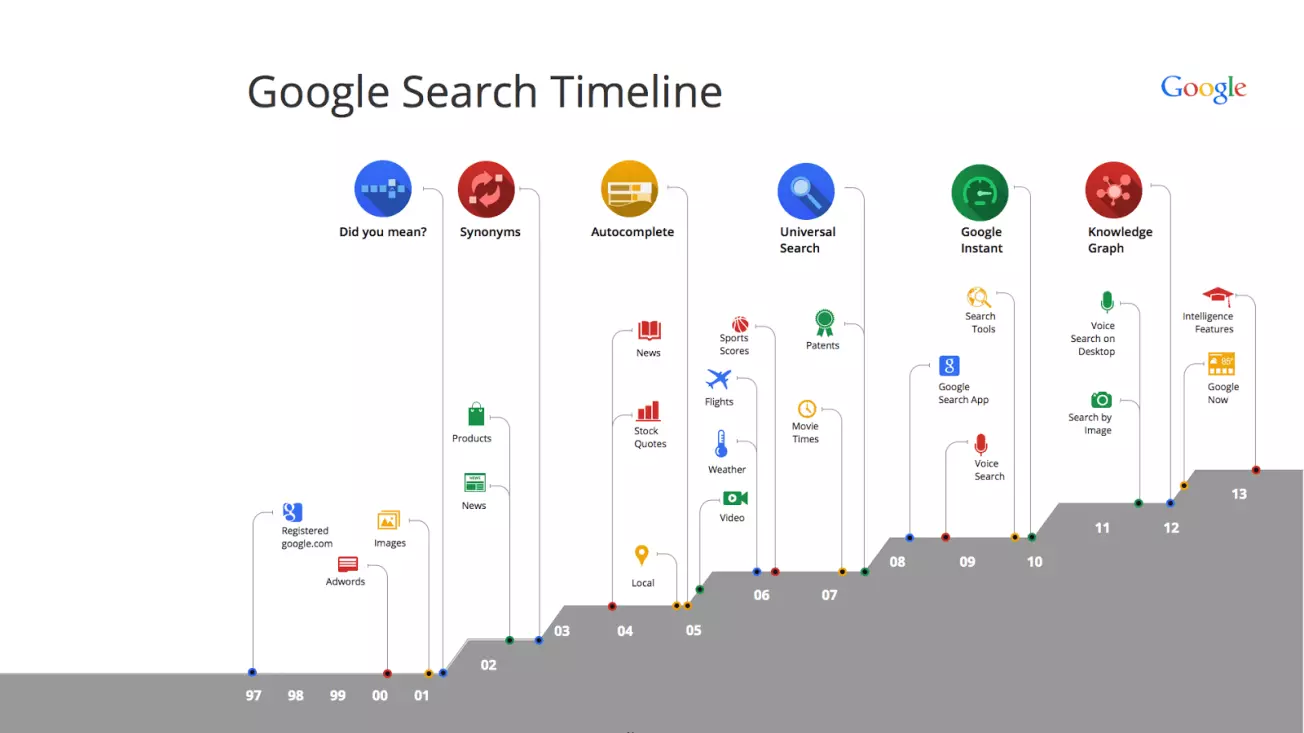 La búsqueda de Google llegó en el momento adecuado: 1998. Justo antes del cambio de siglo se produjo una explosión de páginas web. Esta avalancha de información dificultó enormemente la tarea de encontrar el contenido que los usuarios realmente necesitaban. Como consecuencia, y basándose en el algoritmo PageRank desarrollado por Larry Page y Sergey Brin, Google intentó contrarrestar este problema.