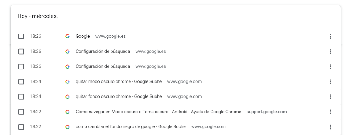- Selecciona la opción “Historial”. Aparecerá una lista con las últimas consultas de búsqueda.