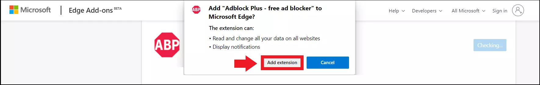 Paso 1: Dependiendo del navegador, descarga la extensión Adblock seleccionada desde las páginas de complementos de Edge, Chrome, Firefox, Safari o directamente desde la página web del proveedor. En este ejemplo, utilizamos la extensión gratuita Adblock Plus para Edge. Por regla general, las extensiones se añaden al navegador a través de “Instalar” o “Añadir”.