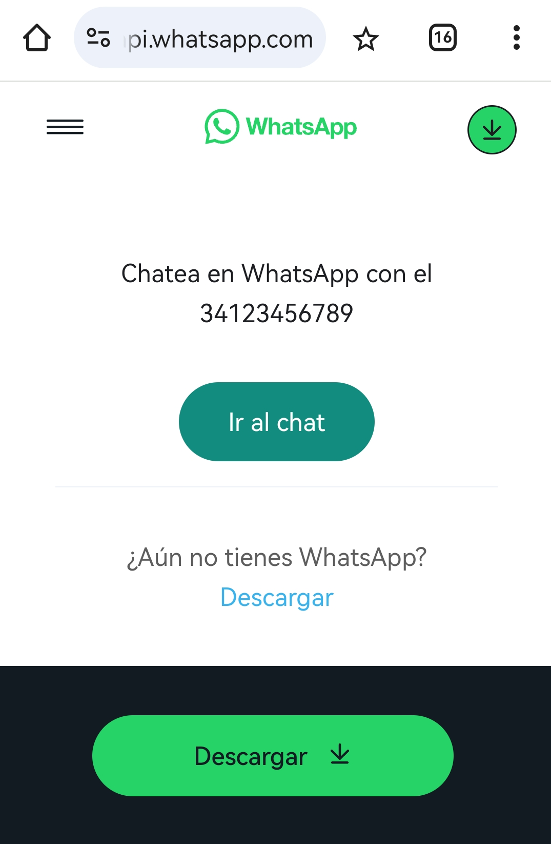 - Introduce el siguiente enlace en tu navegador web y añade el número de teléfono al que quieres escribir: