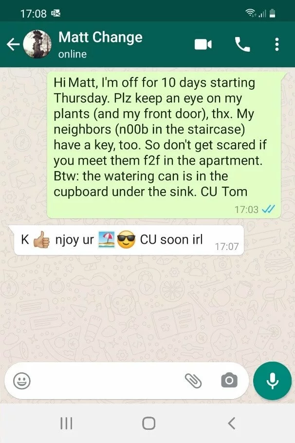 La combinación de letras y símbolos :-0, por ejemplo, representa una cara que dice “¡Oh!” (es más reconocible si inclinamos un poco la cabeza hacia la izquierda). Hoy en día existen muchísimas caras de este tipo en los chats. Pero en los chats también se usan un gran número de abreviaturas, incluso en inglés. Métete de lleno en el apasionante mundo de las abreviaturas de WhatsApp. Seguro que nuestra guía te será de utilidad. Así que: “¡hf irl!”