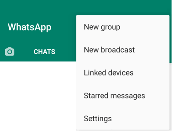 - Inicia WhatsApp y pulsa en el símbolo de los tres puntos en la esquina superior derecha.
