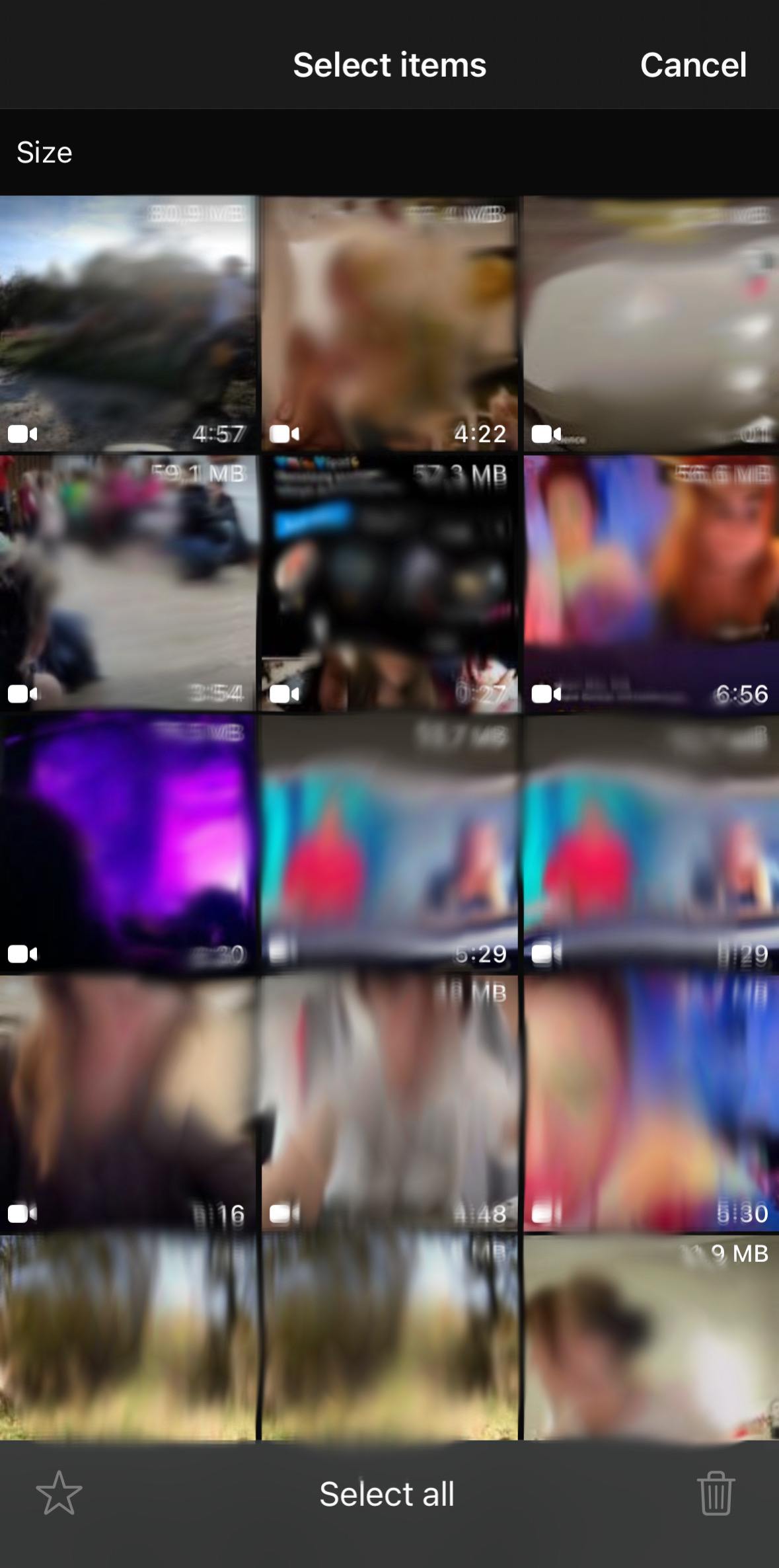 - Si quieres seleccionar varios archivos, pulsa “Seleccionar” (Select ítems) en la esquina superior derecha. A continuación, puedes seleccionar todos los archivos que quieras. Para eliminarnos, pulsa sobre el símbolo de la papelera y confirma con “Eliminar elementos”.