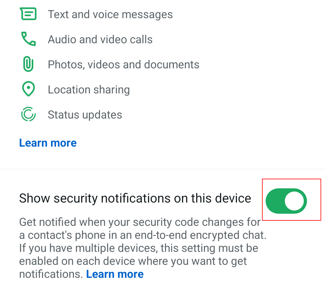 Truco 16: activa la notificación de seguridad en WhatsApp