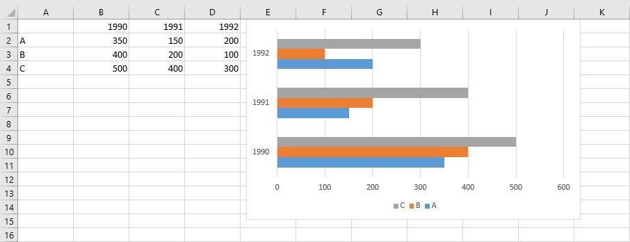 Un diagrama normal de Excel se compone de varios elementos. En el centro aparece el gráfico en sí, la representación de los valores seleccionados, y a su lado encontrarás más información: