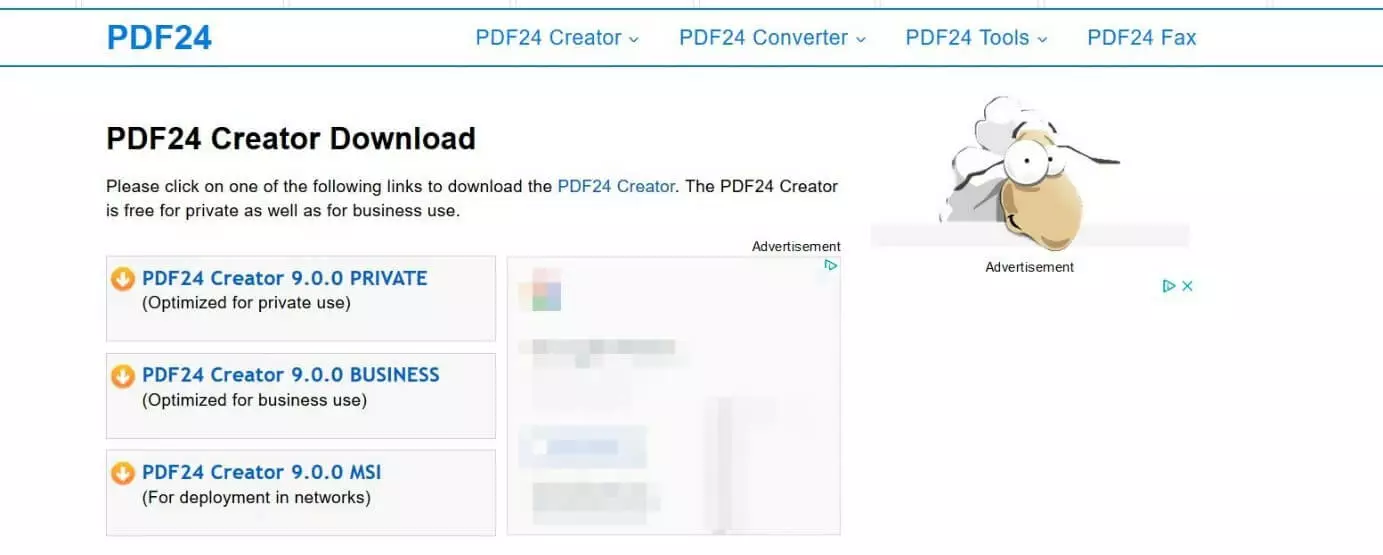 El programa PDF24 Creator es, como hemos mencionado en el punto anterior, gratuito, tanto para uso privado como comercial. En su propia página web, el fabricante ofrece tres ediciones diferentes para descargar, aunque (actualmente) no hay diferencias funcionales entre “PRIVATE”, “BUSINESS” y “MSI” (para la distribución central en los ordenadores de la empresa).