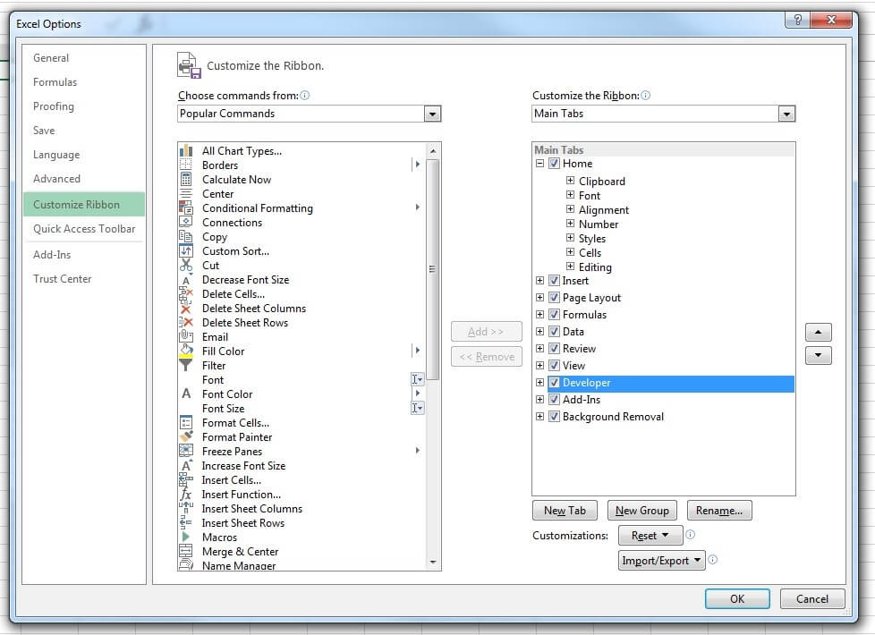 Primer paso: añadir la ficha Developer a la cinta de opciones
