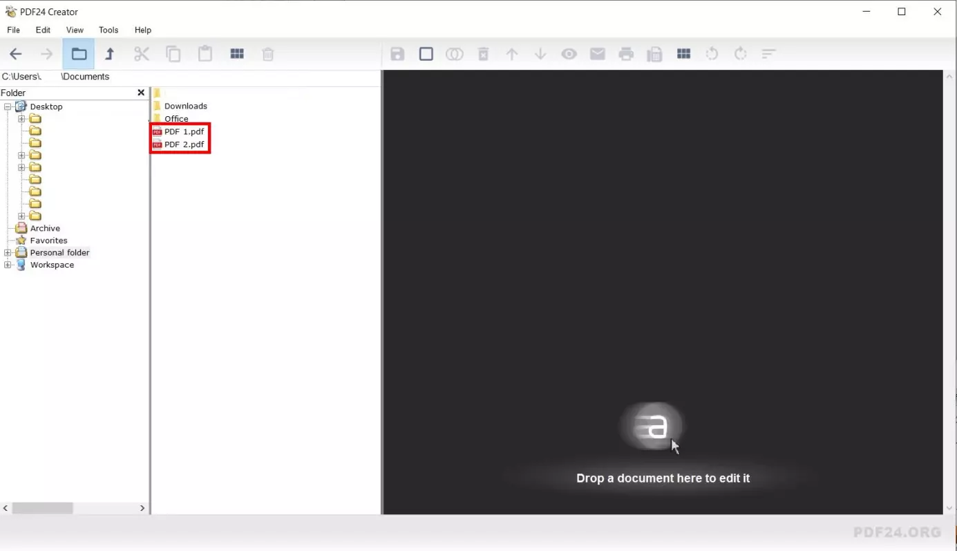 Combinar archivos PDF sin conexión con PDF24 Creator