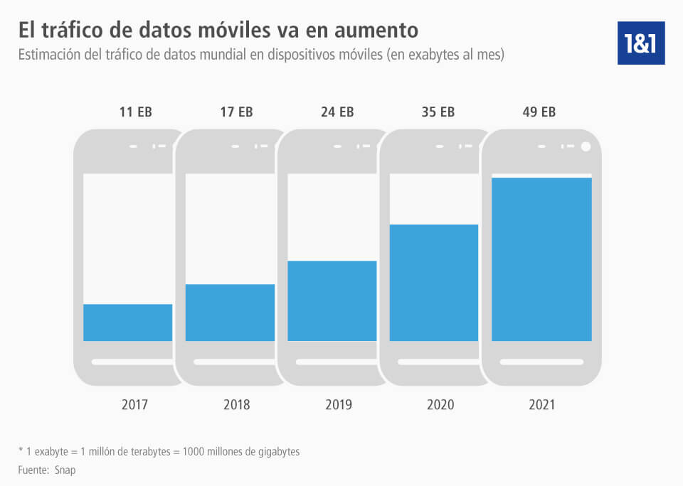El mundo digital es cada vez más móvil. En España, más del 90 por ciento de los usuarios de Internet usan dispositivos móviles para conectarse. Hoy en día, potentes dispositivos de bolsillo con cientos de funciones reemplazan un gran número de otros menos eficaces y funciones estándar como llamar y enviar mensajes de texto se ven relegadas a un segundo plano. El estudio realizado por la Asociación para la Investigación de Medios de Comunicación (AIMC) muestra que a principios de 2016 más de tres cuartos de los usuarios de Internet usaron sus dispositivos móviles para navegar por la web, una tendencia que va en aumento. Los expertos estiman que para el 2021, con casi 49 exabytes, el tráfico global de datos móviles se quintuplicará.