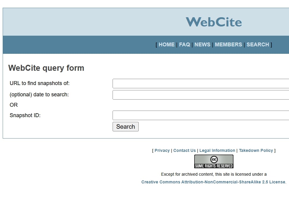La herramienta WebCite permite acceder a páginas web ya archivadas y citarlas como fuente. Sin embargo, actualmente no admite nuevas solicitudes de archivado. Aun así, los snapshots existentes pueden seguir consultándose y utilizándose como referencia. Gracias a ello, es posible buscar páginas web antiguas y recuperar versiones anteriores de páginas web.
