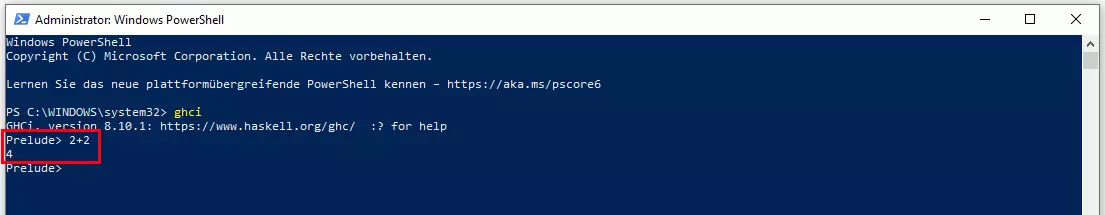 sudo apt-get install haskell-platformUna vez completada la instalación, deberías poder iniciar el entorno de desarrollo interactivo cuando lo desees con el comando “ghci” desde la línea de comandos de tu sistema: en Windows, por ejemplo, a través de PowerShell, que también se recomienda para la instalación.