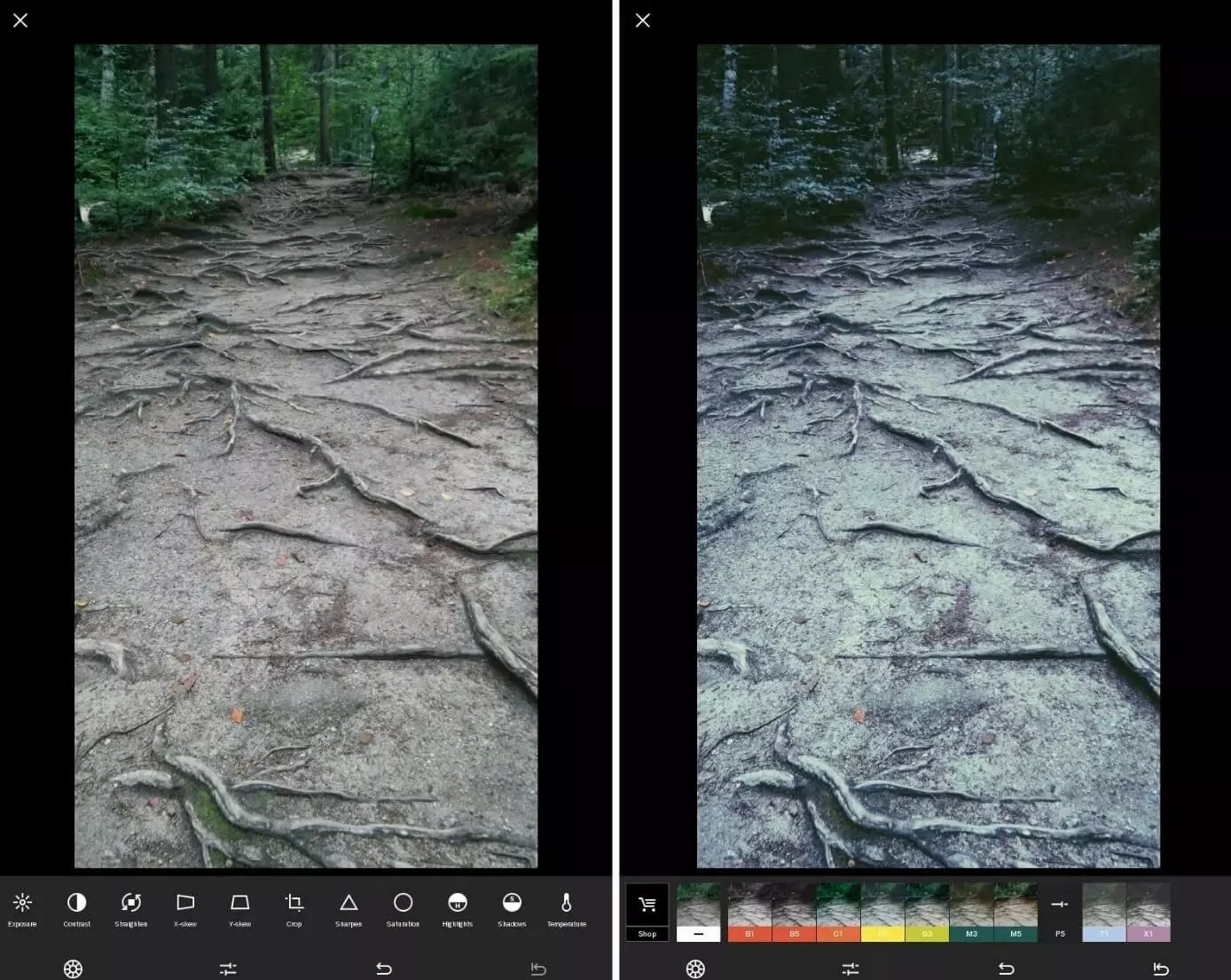 Para comenzar a utilizar la herramienta se puede hacer una foto directamente desde la aplicación o importarla. A continuación se cuenta con dos menús de edición, el que contiene las funciones de corrección para todos aquellos que quieren tomar parte activa y los filtros de efectos, llamados presets en la aplicación y que modifican la atmósfera de la imagen automáticamente con un solo gesto del dedo. En este caso el usuario solo determina la intensidad del filtro, mientras que las funciones de corrección, que igualmente se operan con un regulador, no tienen efectos automáticos. Con ello, la aplicación de edición de fotos permite mantener el control cuando se trata de modificar las siguientes propiedades: