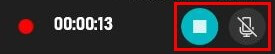 Cuando se empieza a grabar la pantalla, las opciones que se muestran en la ventana cambian automáticamente. Haz clic en el cuadrado para detener la grabación. También puedes activar y desactivar el micrófono en cualquier momento.
