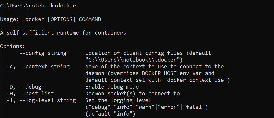 Tras la instalación, los comandos Docker también estarán disponibles en la línea de comandos.