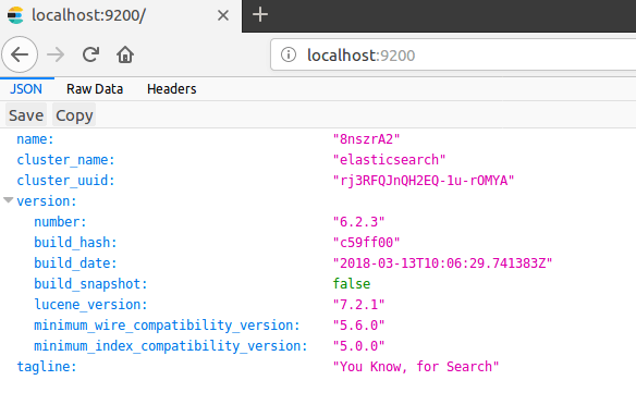 Si has introducido todo correctamente, Elasticsearch debería ofrecer la siguiente información al principio del mensaje: