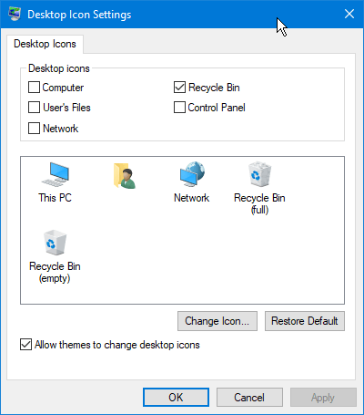 - Marca la casilla de verificación en “Papelera de reciclaje”.