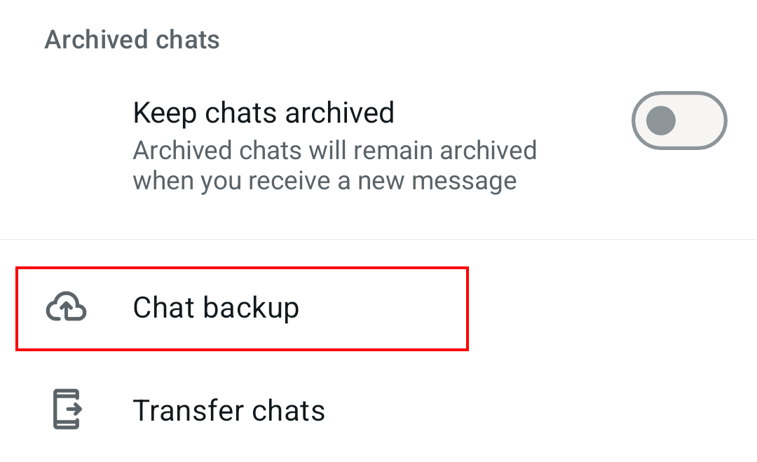 Paso 4: en “Chats”, ve a “Copia de seguridad” (Chat backup) en la parte inferior.