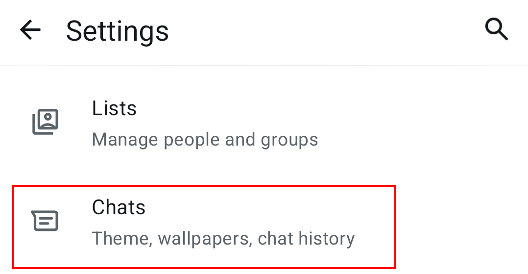 Paso 3: selecciona “Chats” en los ajustes de la cuenta.
