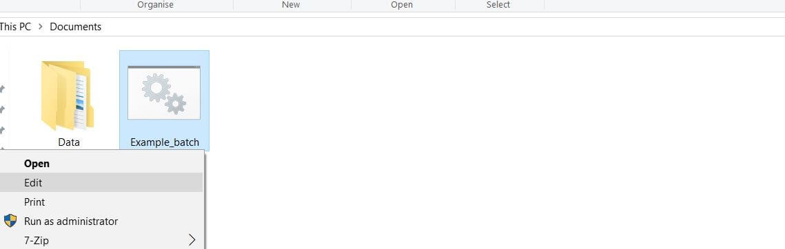 Una vez creado un script batch puedes adaptarlo en cualquier momento si, por ejemplo, deseas añadir otros comandos, eliminar comandos existentes o modificar directorios. Para ello, simplemente accede a la carpeta en la que se encuentra el script de comando y selecciónalo con el botón derecho del ratón. A continuación, activa la opción “Editar”.