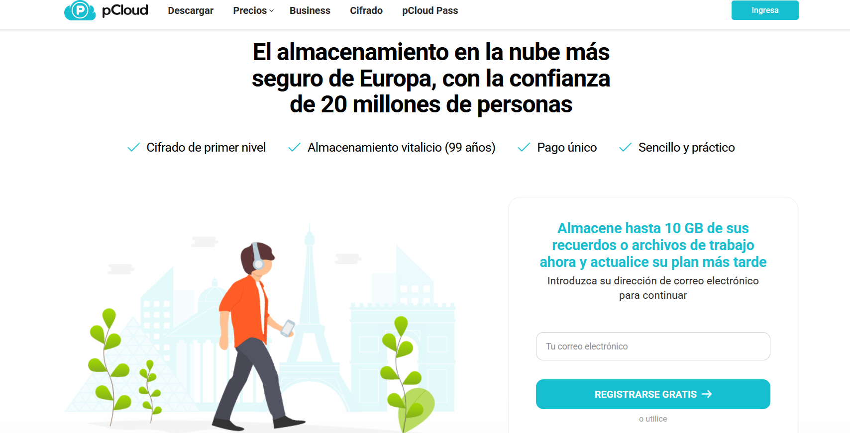 pCloud tiene versión web, pero también está disponible en versión móvil para iOS y Android y para Windows, Mac y Linux. Para usarla, tendrás que registrarte con tu correo o cuenta de Google y compañía. La suscripción gratuita incluye 10 GB de almacenamiento, cantidad solo superada por Google Fotos. En cuanto a las opciones de pago, tienes Premium con 500 GB o Premium Plus con 2 TB, facturable anualmente o de una sola vez. Sin embargo, la oferta para usar pCloud de por vida solo merece la pena si tienes previsto usar su nube más de tres años.