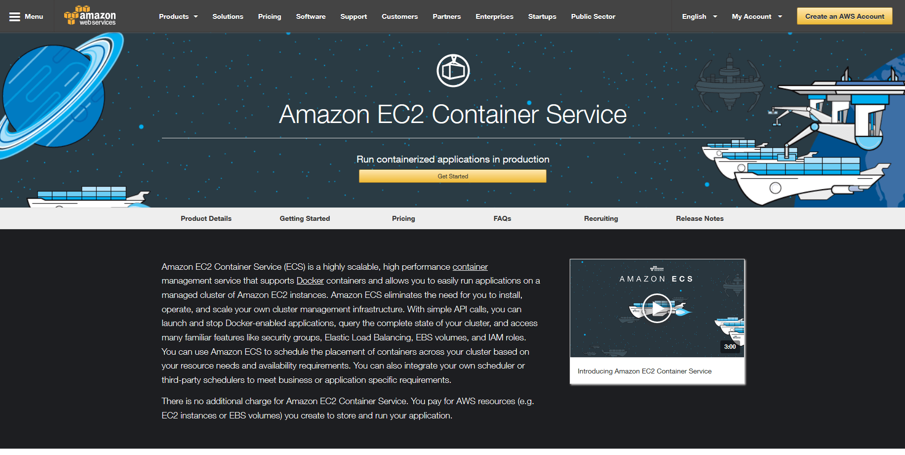 Desde abril de 2015, el gigante digital Amazon también ofrece soluciones de virtualización basadas en contenedores bajo el nombre de Amazon Elastic Container Service (ECS) en su plataforma en la nube AWS (Amazon Web Service). ECS solo soporta el formato Docker para los contenedores.