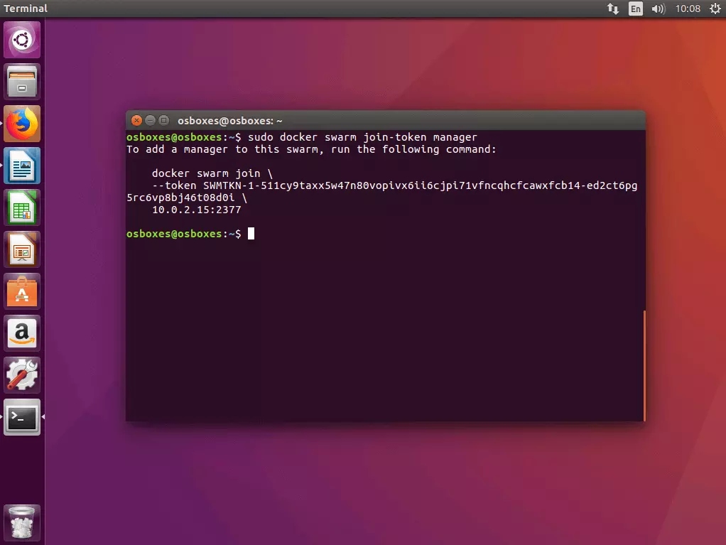 To add a worker to this swarm, run the following command: