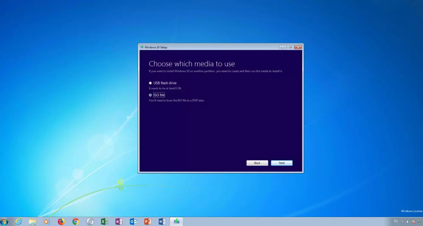 - Un archivo ISO del sistema operativo seleccionado que contenga todos los archivos de instalación necesarios para la nueva instalación. En el pasado estos archivos se encontraban en un CD o DVD que bien acompañaban al nuevo ordenador, bien se adquirían por separado. No obstante, a día de hoy Windows se encuentra preinstalado en un sistema de particiones de un PC completo o de un portátil. El propio usuario puede crear este tipo de archivo ISO con herramientas como WinISO, UltraISO o el software de grabación de discos ópticos InfraRecorder, pero resulta todavía más fácil descargarse el sistema operativo de Internet. En el caso de Windows 10 se puede proceder a su instalación de forma completamente legal en Media Creation Tool de Microsoft, aunque también existe la posibilidad de descargarla directamente de la página web de la empresa, ya sea para Windows 7 y Windows 8