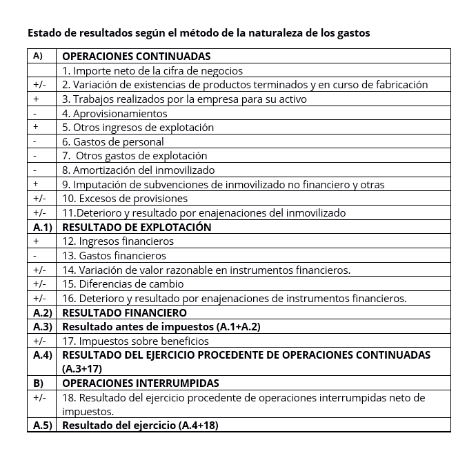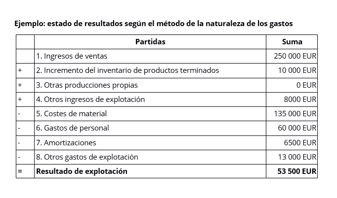 El estado de resultados por naturaleza de gastos