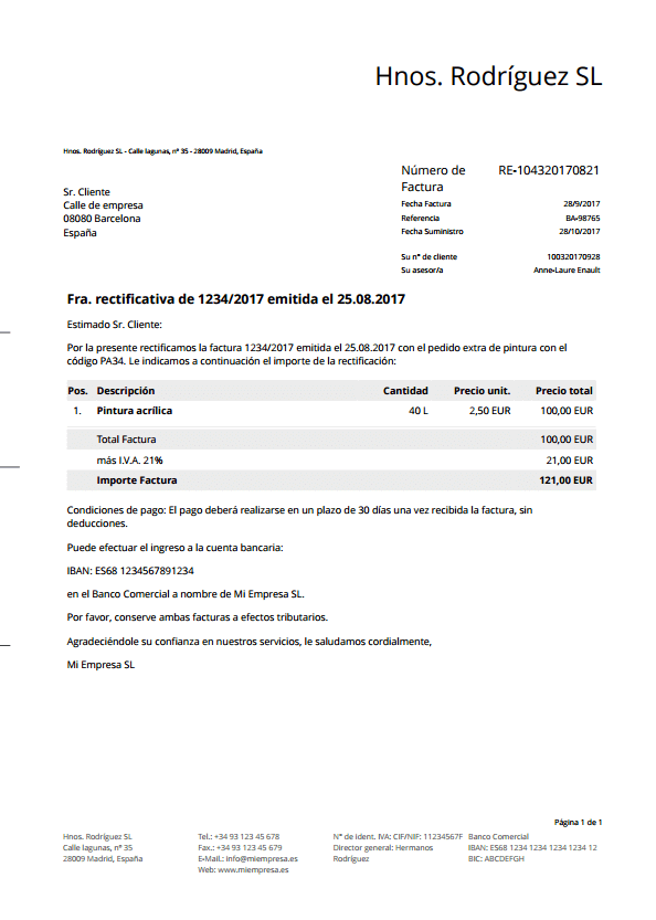 Tu próxima factura rectificativa podría tener un aspecto parecido a esta: