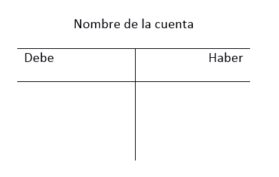 Tradicionalmente el “débito” (o lo que entra) se ha apuntado siempre a la izquierda y el “crédito” (o lo que sale) a la derecha, constituyendo una cuenta mayor, denominada popularmente cuenta “T” por su estructura. La cuenta en contabilidad se representa con una T de brazos largos o de “doble columna” y sus partes son: Debe, Haber y Nombre de la cuenta.