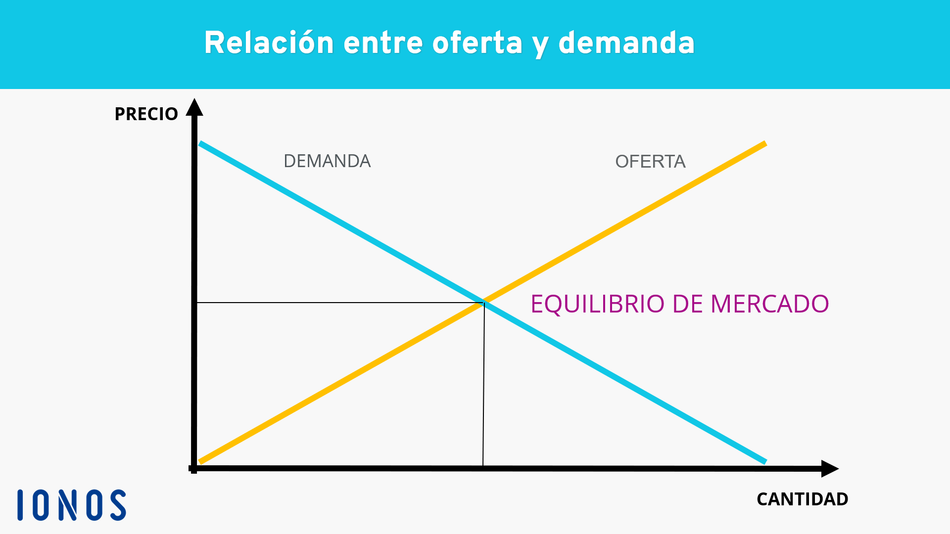 En el punto en el que la curva de oferta y la de demanda se cruzan, la relación entre oferta y demanda está completamente equilibrada. Se produce la cantidad exacta que se necesita y tanto el precio de mercado como la cantidad producida se mantienen estables. Se establece el denominado equilibrio de mercado, un concepto que es exclusivamente teórico. En realidad, el exceso de oferta y de demanda se van turnando continuamente. Este fenómeno se suele describir con la afirmación “el mercado se regula solo”.