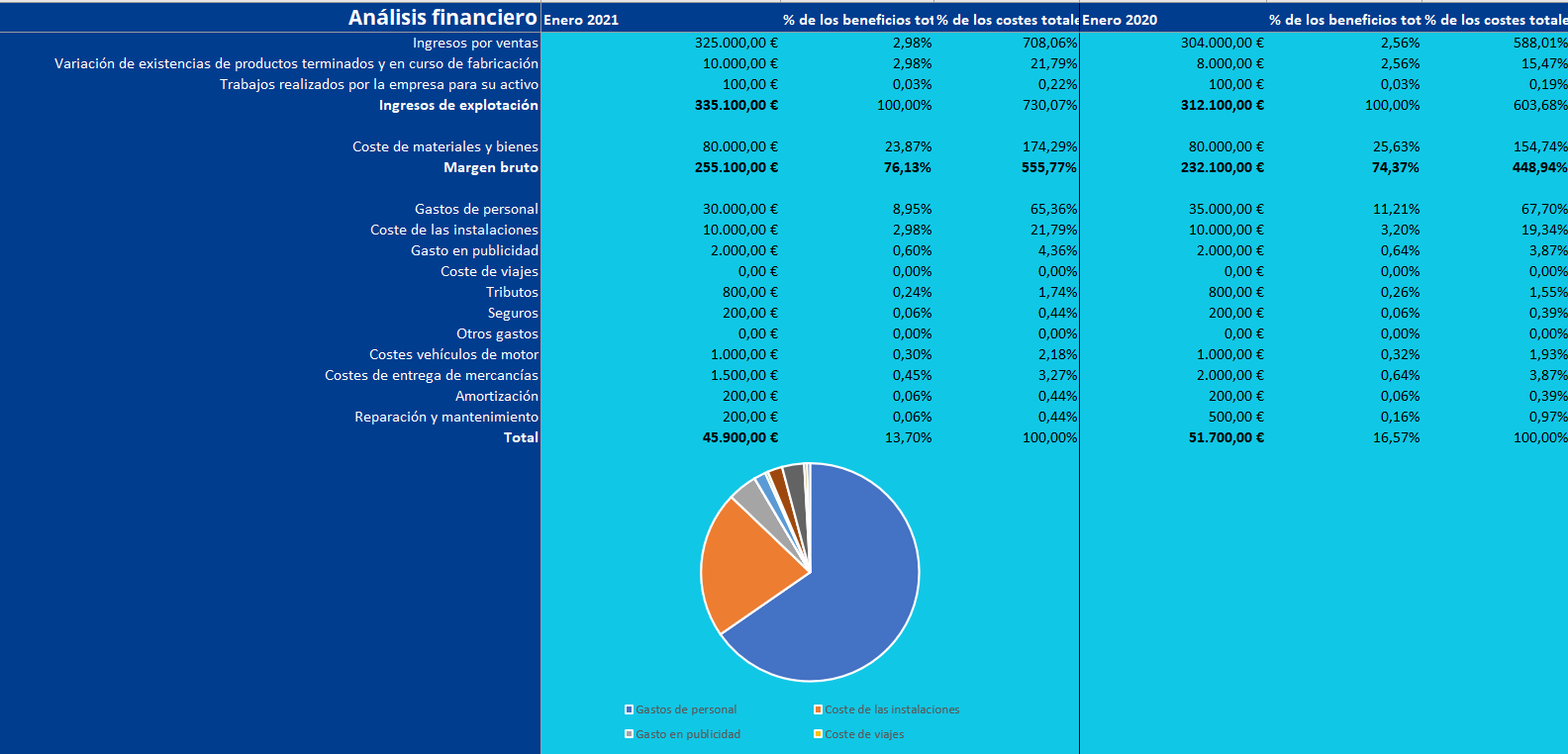 Un análisis financiero es una herramienta que sirve para analizar la situación económica de una empresa durante un período de tiempo determinado. Este informe suele crearse en los periodos de tiempo que se desee (mensualmente, trimestralmente, anualmente, etc.) y contiene información relativa a los ingresos y gastos del negocio. Con estos datos se pueden realizar comparaciones entre meses y años que ayudarán al empresario a valorar la evolución de las ganancias.