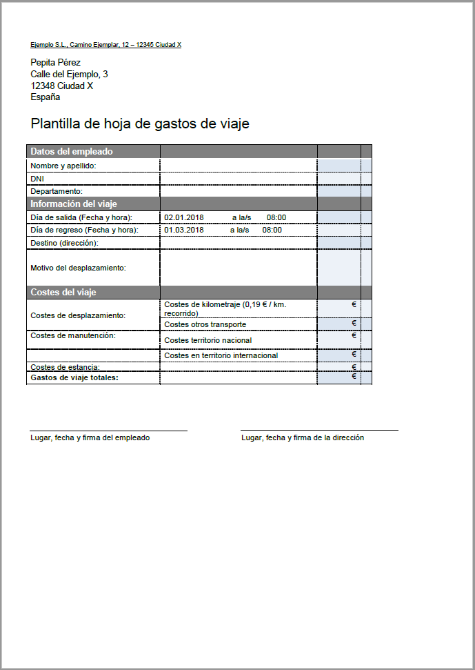 Un empleado tiene que desplazarse para realizar una actividad para la empresa, sin importar si se trata de una comunidad vecina o de otro país. Sea como fuere, probablemente incurra en una serie de gastos: billetes de tren, avión, metro, alojamiento en un hotel, comidas, etc. Es posible que algunos de ellos ya hayan sido sufragados por la empresa por adelantado y, por lo tanto, no sea necesaria su justificación o liquidación. No obstante, si la empresa no adelanta el pago de algunos de los gastos, habrá que presentarlos al departamento de finanzas que, además de los justificantes (recibos, facturas, tickets), pueden aceptar e incluso exigir un resumen detallado mediante una hoja de gastos de viaje.