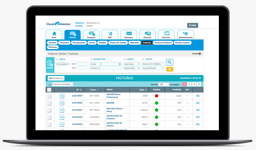 Cloud Gestion no solo es un software de facturación online, sino una aplicación en la nube que simplifica la emisión y recepción de facturas electrónicas para empresas y personas físicas que ofrecen servicios y permite llevar un control sobre los clientes de la empresa y sobre las cuentas que hay que cobrar. Gracias a que puedes acceder al software desde cualquier dispositivo con conexión a Internet, ya sea PC, tablet o un smartphone, podrás realizar tus facturas en pocos segundos y desde cualquier lugar.