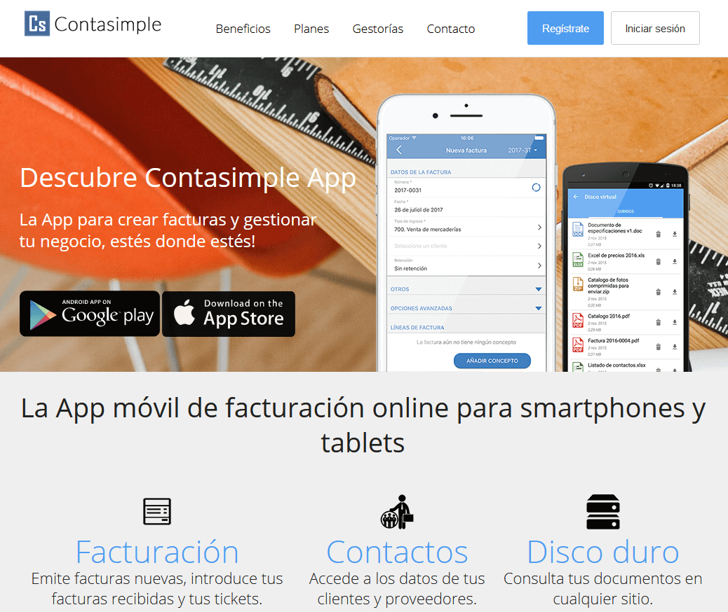 Para mostrar este video, se requieren cookies de terceros. Puede acceder y cambiar sus ajustes de cookies aquí. Desde 2016, el programa cuenta con una aplicación disponible para usuarios iOS y Android. De esta forma, podrás crear facturas en pocos segundos y desde cualquier lugar para enviarlas sobre la marcha a tus clientes por correo electrónico. También podrás introducir facturas recibidas y tickets, acceder a los datos de proveedores y clientes y consultar tus documentos desde cualquier sitio.