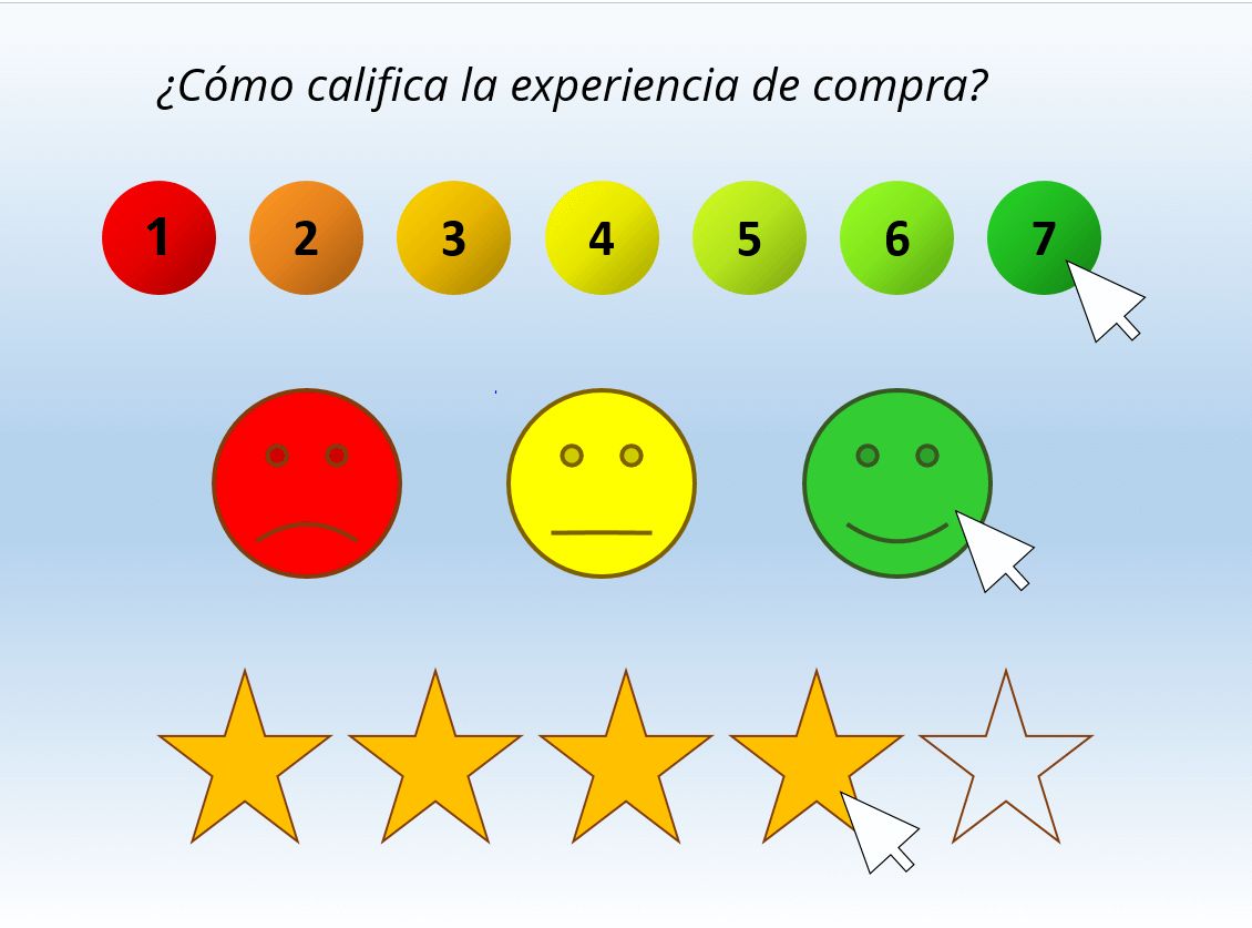 El cliente puede responderla aportando un valor dentro de una escala, que puede oscilar entre 1 y 3, 1 y 5, e incluso en algunos casos de 1 a 10, si bien es cierto que optar por las escalas con mayor número de valores no es siempre lo más recomendado.